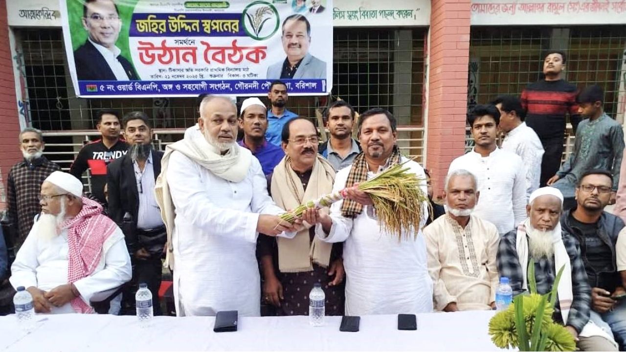 বরিশাল-১ আসনে বাংলাদেশ জাতীয়তাবাদী দল (বিএনপি) মনোনীত প্রার্থী এম জহির উদ্দিন স্বপনের ধানের শীষের সমর্থনে বরিশাল গৌরনদী পৌরসভার ৫ নম্বর ওয়ার্ড বিএনপি ও অঙ্গ সহযোগী সংগঠনের উদ্যোগে একটি উঠান বৈঠক অনুষ্ঠিত হয়েছে।