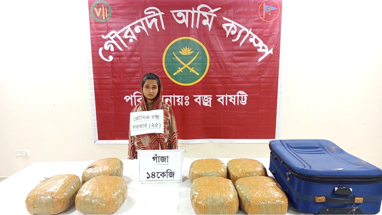 বাংলাদেশ সেনাবাহিনীর ৭ পদাতিক ডিভিশনের আওতাধীন ৬ পদাতিক ব্রিগেডের অধীনস্থ ৬২ ইস্ট বেঙ্গল রেজিমেন্টের নেতৃত্বে পরিচালিত অভিযানে কৌশিক চন্দ্র সরকার (২৫) নামের এক তৃতীয় লিঙ্গের ব্যক্তিকে গাঁজাসহ হাতেনাতে আটক করা হয়।